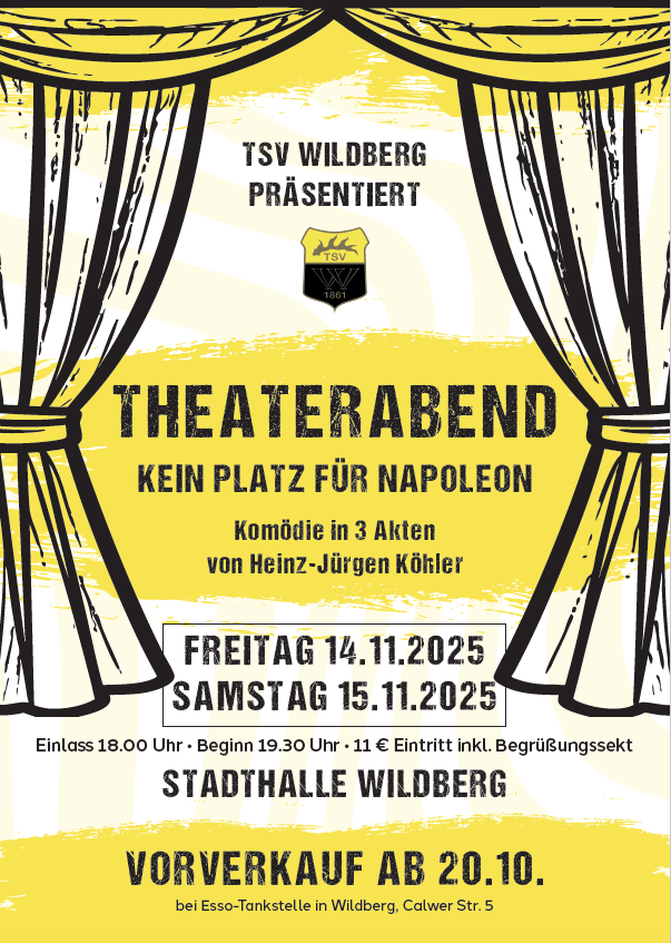 - 14. 11.2025 – Am 14. und 15.11.2025 Theatherabend in der Stadthalle Wildberg